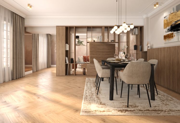 Ne diferențiază măiestria de a combina elemente de design modern cu accente tradiționale sau clasice, pentru a crea un aspect final echilibrat și coerent.